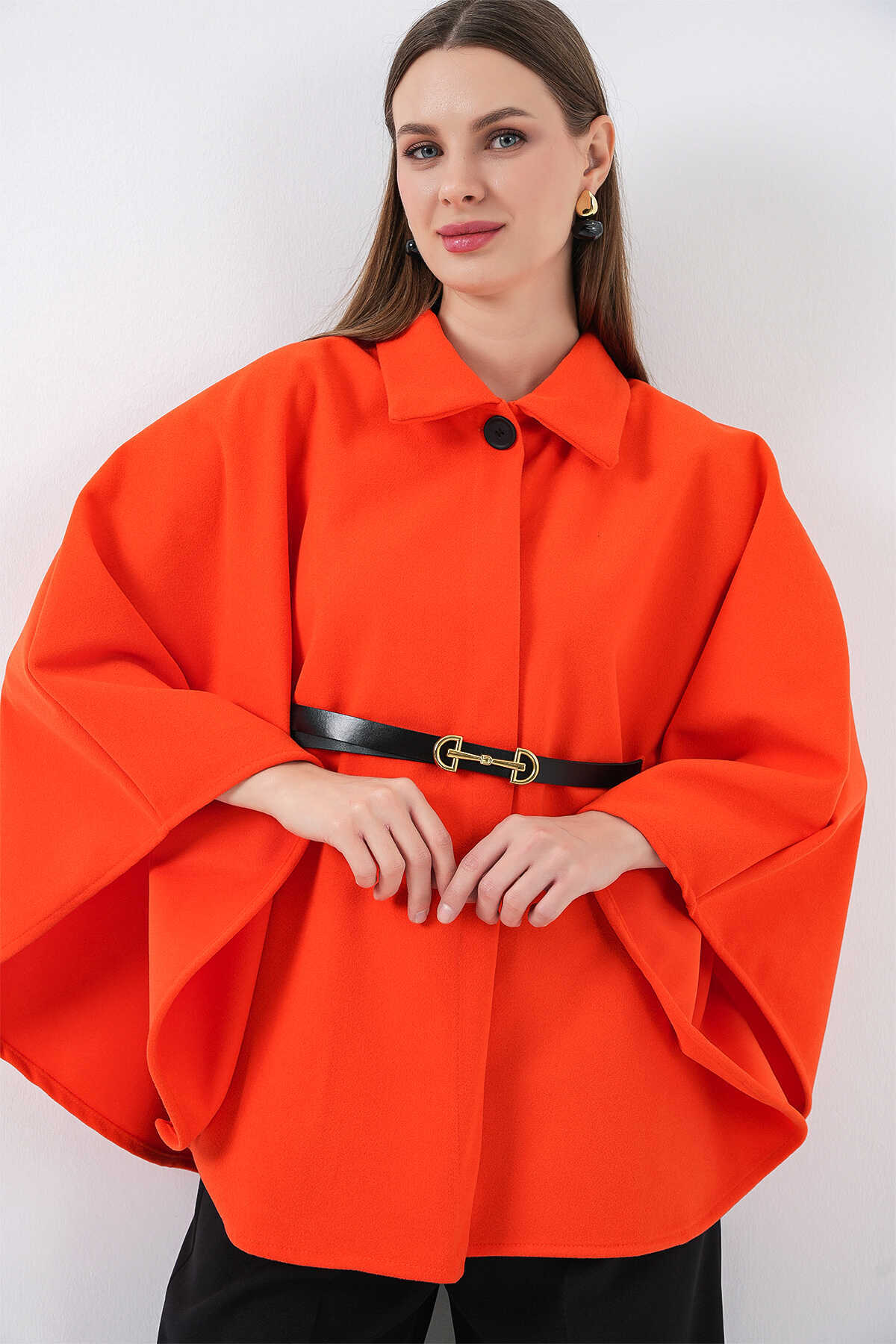 vaaaymoda kadın kemerli kaşe panço