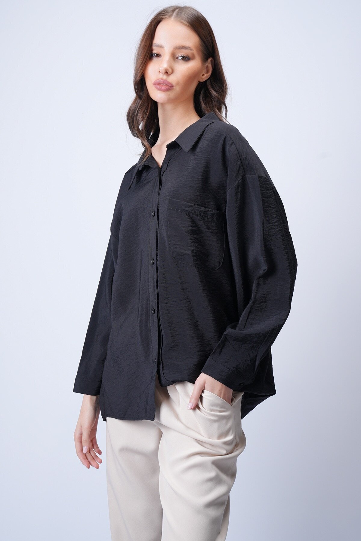 VAGGON Siyah Tek Cepli Oversize Gömlek Özellikleri