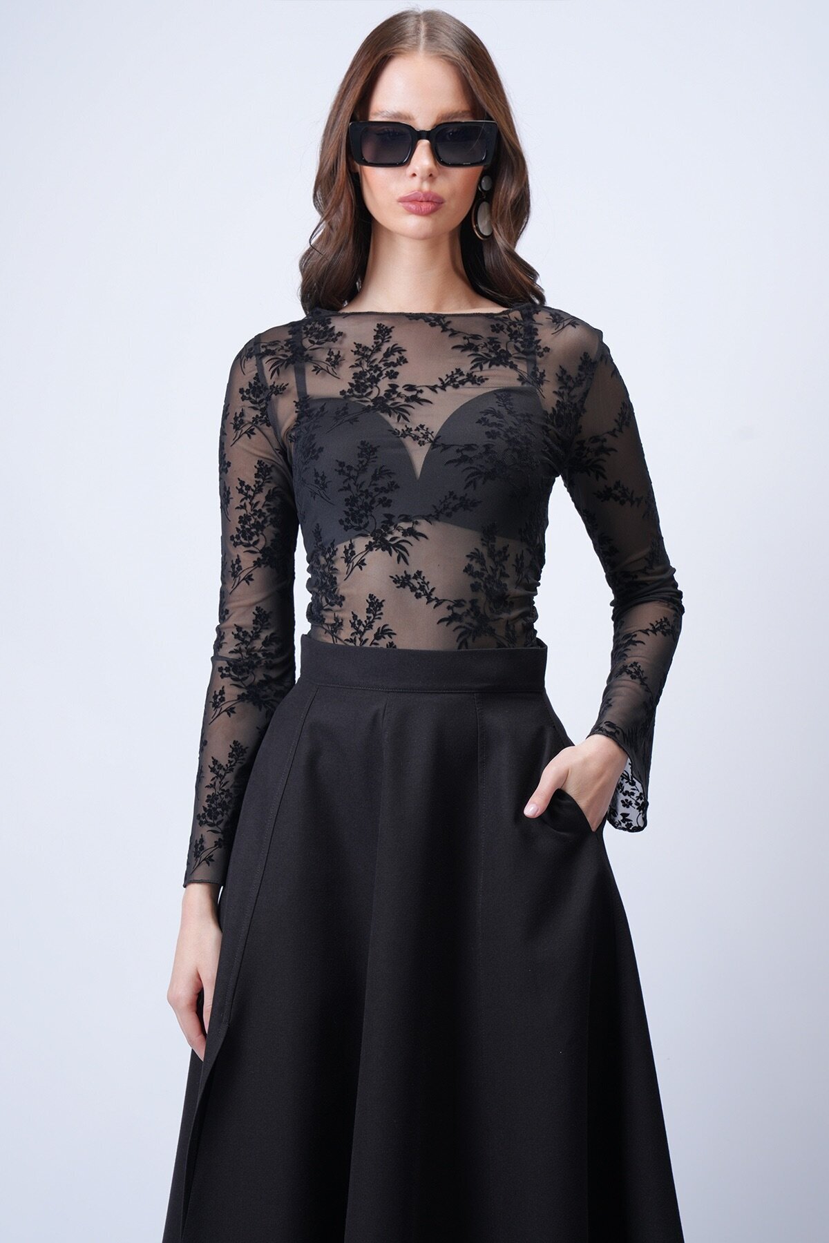 VAGGON Siyah Transparan İşlemeli Bluz Özellikleri