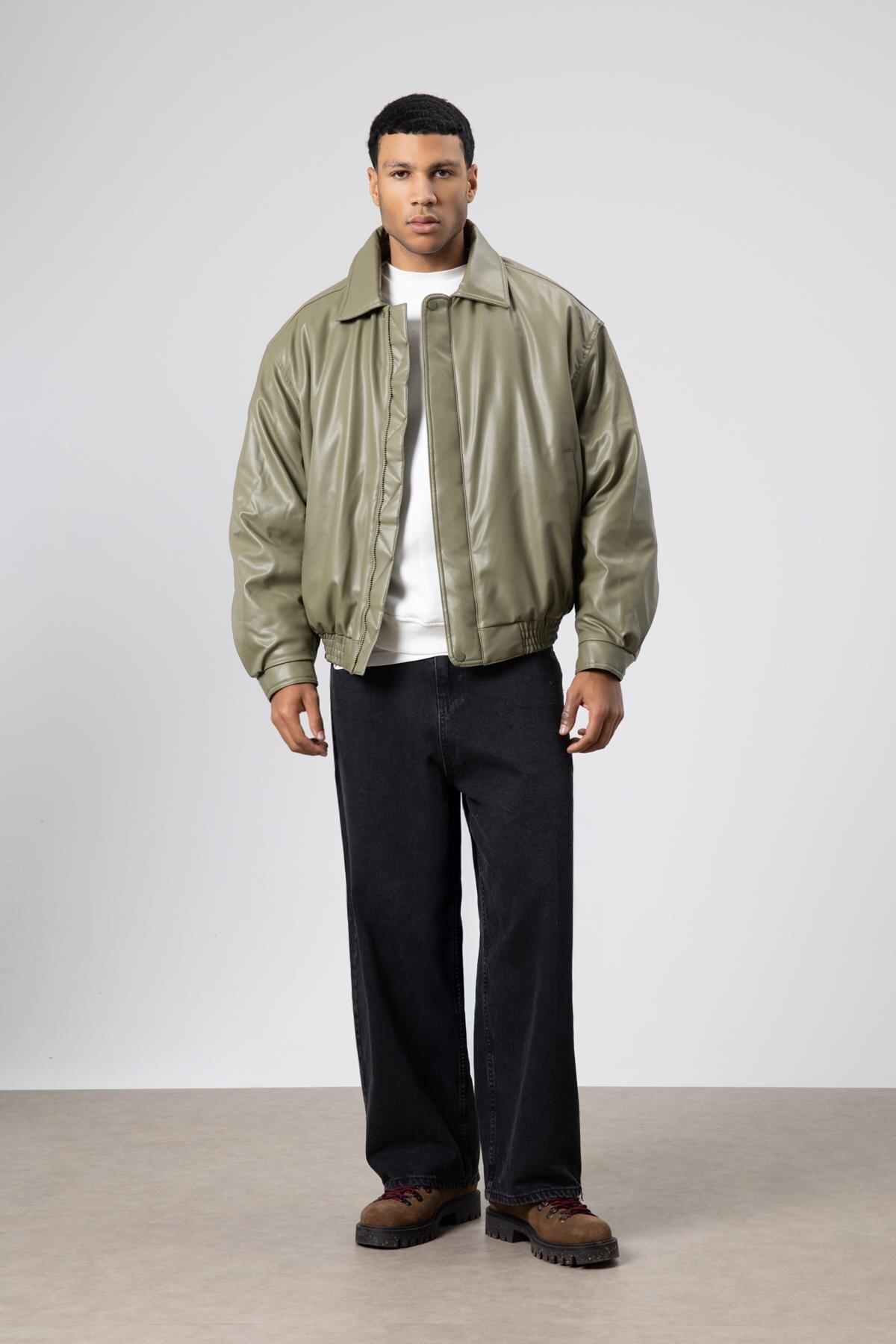 Vamos Basıc Suni Deri Oversize Ceket Haki Özellikleri