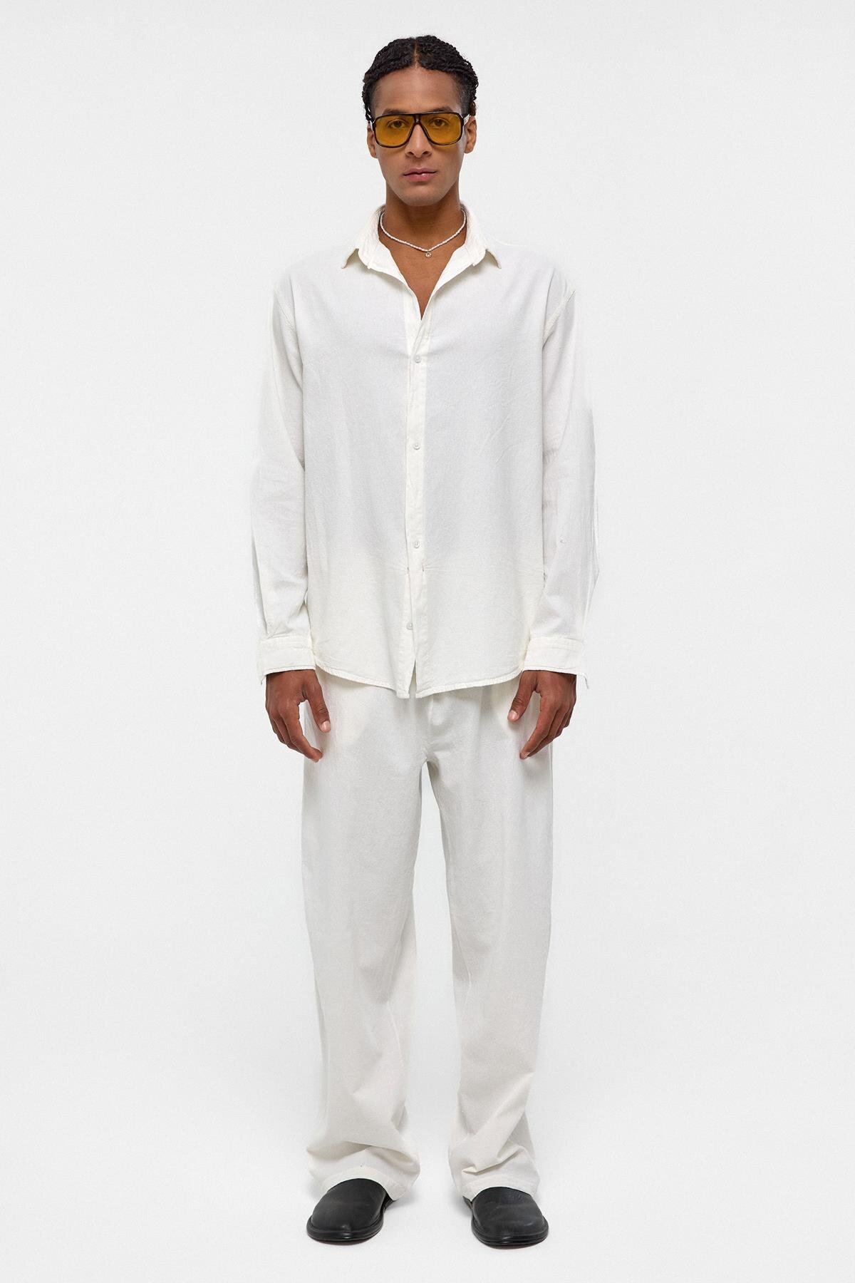 VAMOSCLO Basic Oversize Keten Takım Ekru Özellikleri