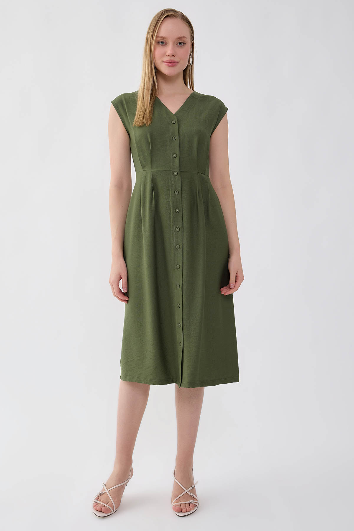 Vitrin Düğmeli V Yaka Elbise Özellikleri