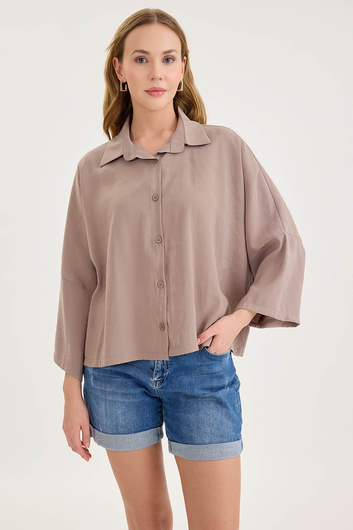 Vitrin Düşük Omuz Oversize Crop Gömlek Özellikleri