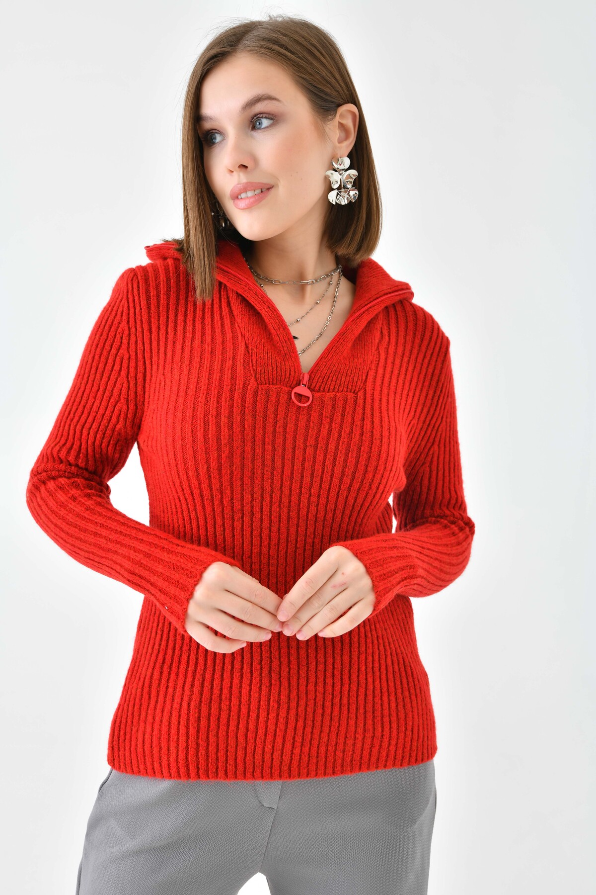 VOLT CLOTHİNG Kadın Fermualı Triko Basic Kazak Özellikleri