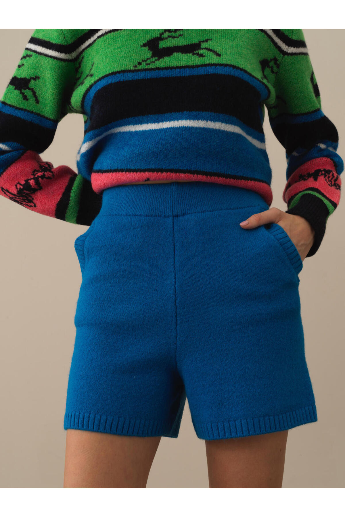 Xint Kadın Mavi Regular Fit Yünlü Triko Şort Özellikleri