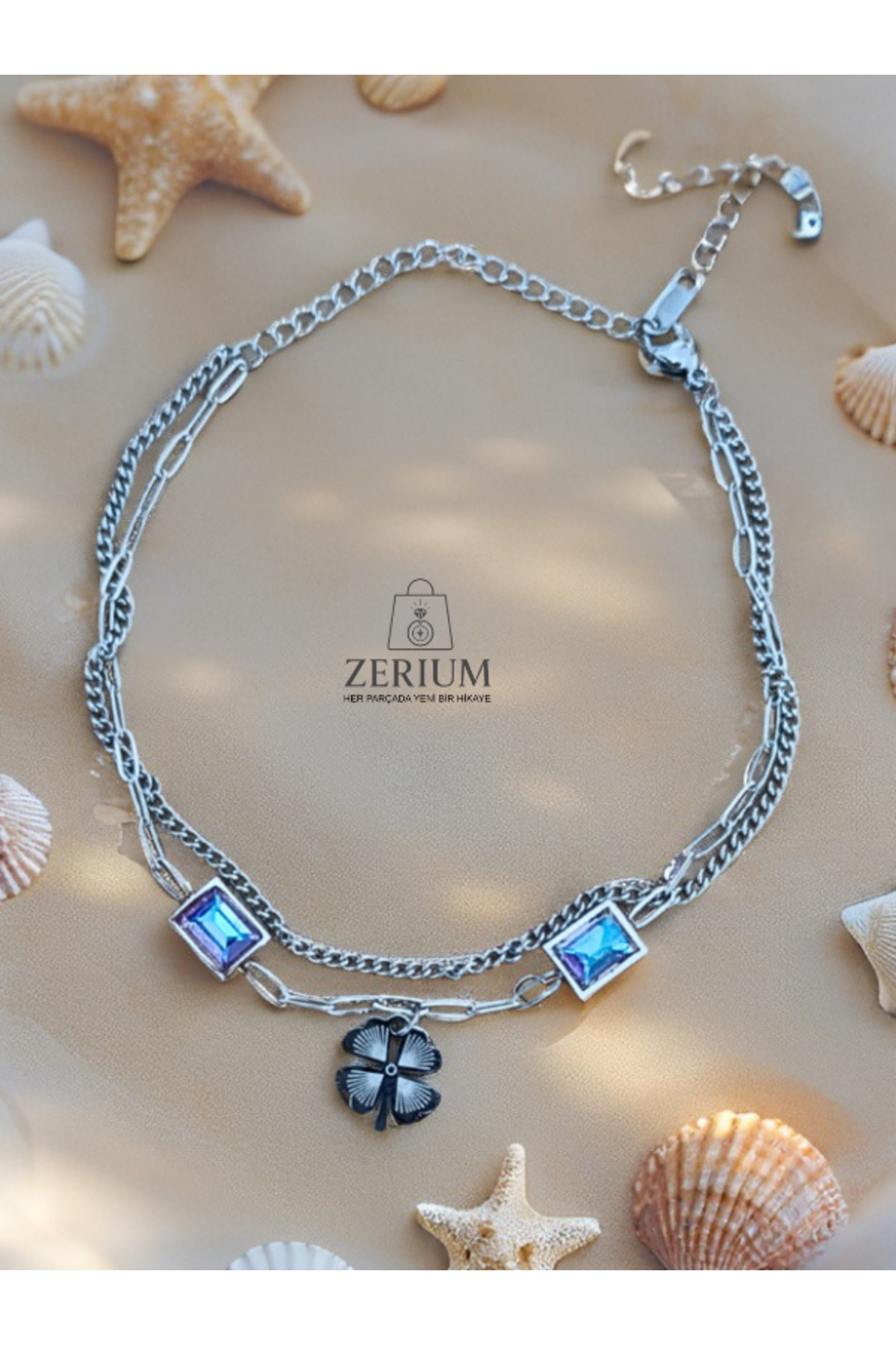 ZERİUM Mavi Şans Dokunuşu – Yonca Figürlü Halhal
